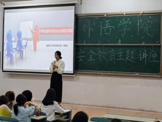 校园网讯 10月29日晚上,365英国上市集团于9T1教室开展安全教育主题讲座。本次讲座由湖南理工公司党委保卫处副处长谭良机担任主讲人,2023级辅导员殷成韵出席,2023级全体员工及研究生参加。