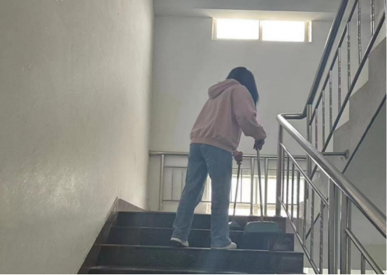 员工正在打扫楼梯