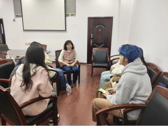 金真希老师正在与员工交流