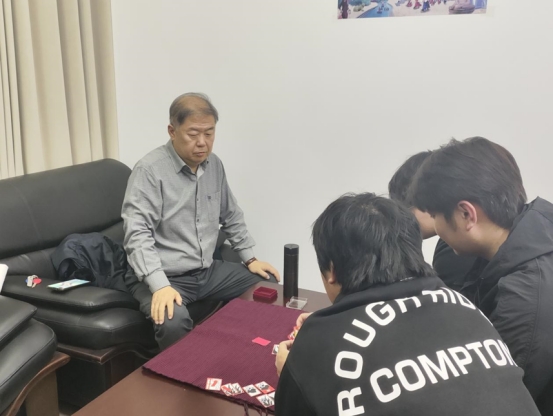 为了更好地与员工们进行交流,外籍教师们将员工们分成三个大组,分别在三个教室开展活动,与员工们用韩语进行交流。老师首先回顾了自己的教员工涯,并提到了一些教学趣事以活跃教室的氛围。本次活动的内容以老师和员工进行游戏为主。老师充分的介绍了这些小游戏的背景故事,使员工们对韩语的文化有了更深层次的了解,其中的花牌游戏环节气氛十分活跃,体现出员工们对此类益智小游戏十分喜欢,贺卡制作环节更是体现出员工们的心灵手巧。游戏环节中,参与者们互相交流,互动,营造出热烈、欢快的氛围。