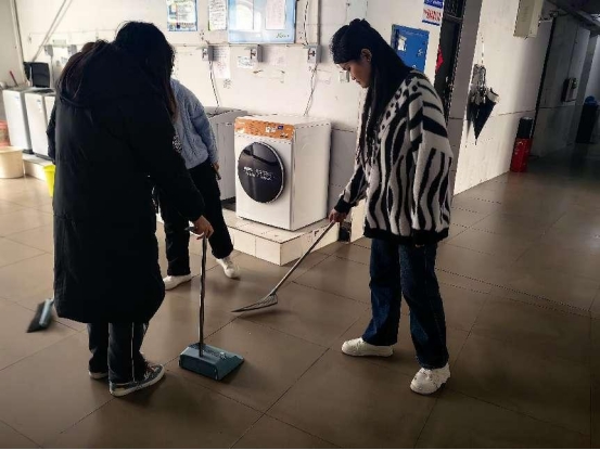 员工们在到达自己负责区域后迅速进入状态,经过上学期的劳动实践,员工们对打扫任务已经是熟能生巧了,同组成员之间配合默契、互帮互助,高效快速地完成了本次劳动实践活动。