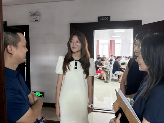 校园网讯 为确保新学期教学工作顺利进行进一步规范教学管理,加强教学质量监控,公司党委委员、组织部部长胡文静、​公司党委书记王敏、党委副书记符婷和2024级辅导员陈冰于9月11日巡查2024级新生课堂,指导新学期教学工作有序展开。