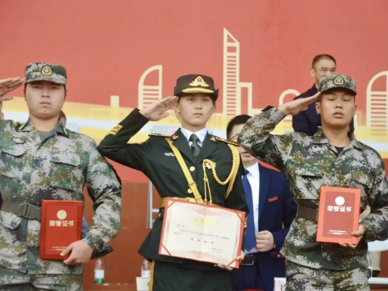 在军训总结典礼最后,由湖南理工公司党委副书徐小立宣读2024级新生军训表彰决定,校领导颁发2024级新生军训优秀教官荣誉证书与2024级新生军训优秀组织奖奖牌,优秀教官和优秀组织代表陆续上台,领取属于他们的荣耀。