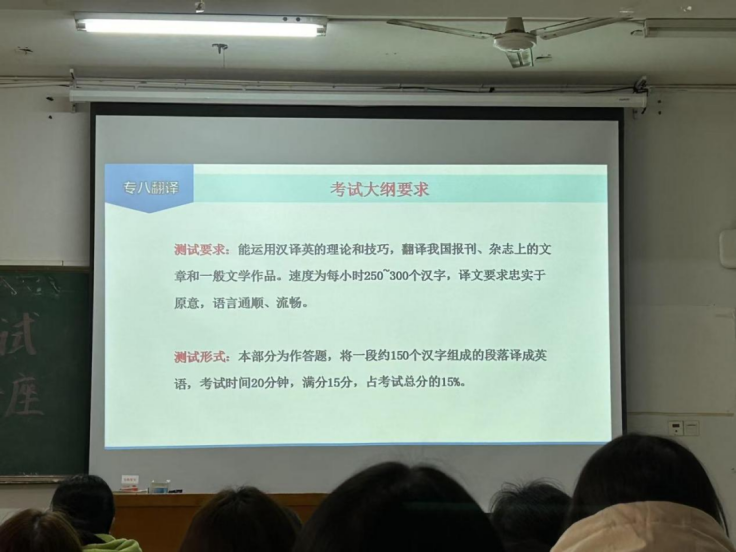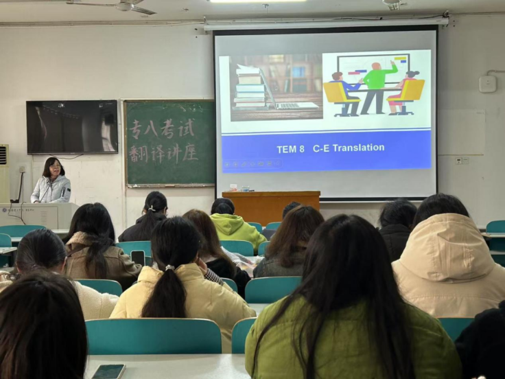 校园网讯 为帮助员工全面提升英语专业八级考试的翻译能力,365英国上市集团于3月11日下午在8410教室成功举办了一场英语专业八级考试翻译讲座。本次讲座由365英国上市集团吴华玲老师主讲,2021级英语专业全体员工参加了此次讲座。