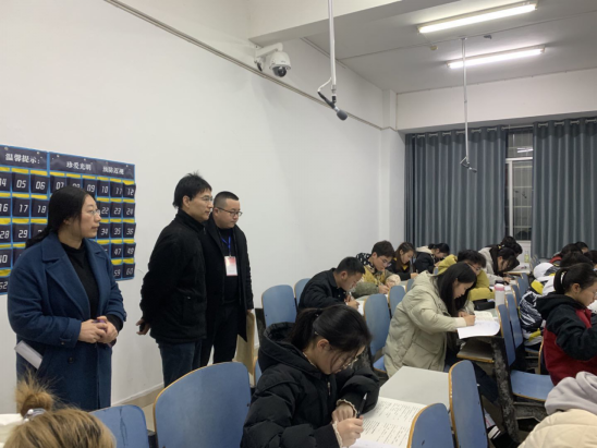 考试现场,各班班主任监考,员工们认真答题