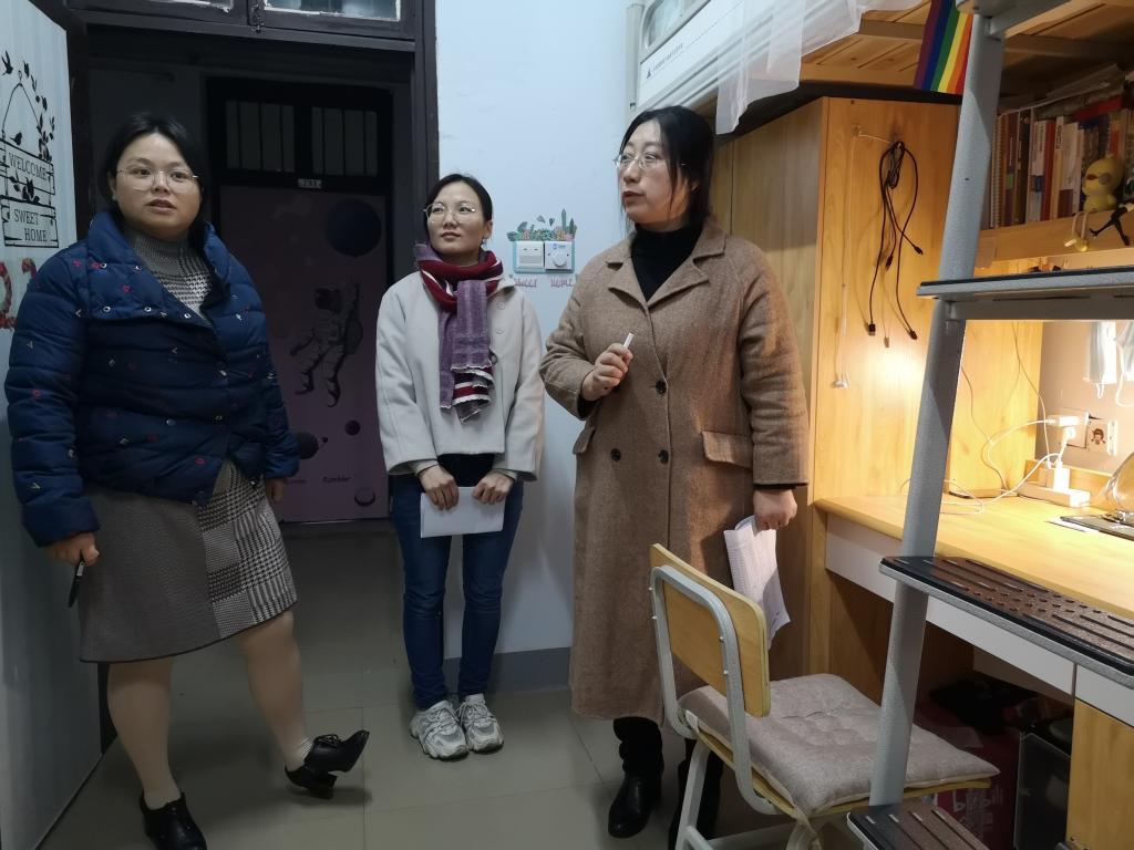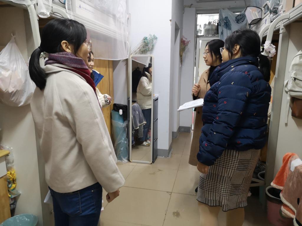在检查寝室过程中,老师们先是查看了各寝室是否要违规电器的使用,随后提醒员工们,冬日已至,要注意保暖,以防感冒,还应提高安全意识,离开寝室和睡前要注意关闭电器开关。