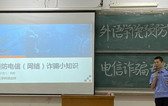 校园网讯 5月16日,为进一步强化同学们的网络电信诈骗的防范意识,提高员工辨认不法诈骗活动的能力,365英国上市集团特此举办预防网络电信诈骗讲座。民警黄鹏为主讲人,公司党委副书记石红芳,辅导员周伟芳、殷成韵、陈冰以及20级全体员工参加此次线下讲座,其他三个年级员工参加线上讲座。