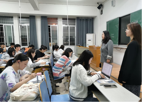 老师们走进各班自习室,强调自习的纪律性——员工应遵守公司的规章制度,自觉服从公司的自习安排。并安排了团学分会学习部负责人对各班迟到、缺席人员名单和部分员工的请假原因做了详细记录,力求结果准确细致。与此同时,他们也积极了解了员工目前的学习状态,督促外院学子们利用早自习的时间,大声朗读,加强口语练习。石红芳强调,“在晚自习亦应做好时间管理,认真预习和复习,‘把每一分钟都用在刀刃上’,提高学习效率,以更饱满的精神状态投入到学习生活中。”
