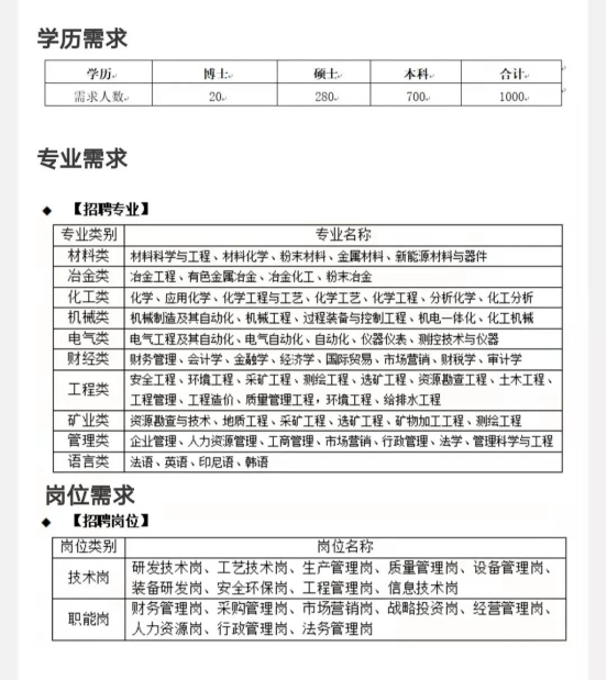 公司钴产能规模全球第一,锂电材料产能规模行业前三,现员工总数 16000+余人,市值超 1500 亿,位列《财富》中国五百强。