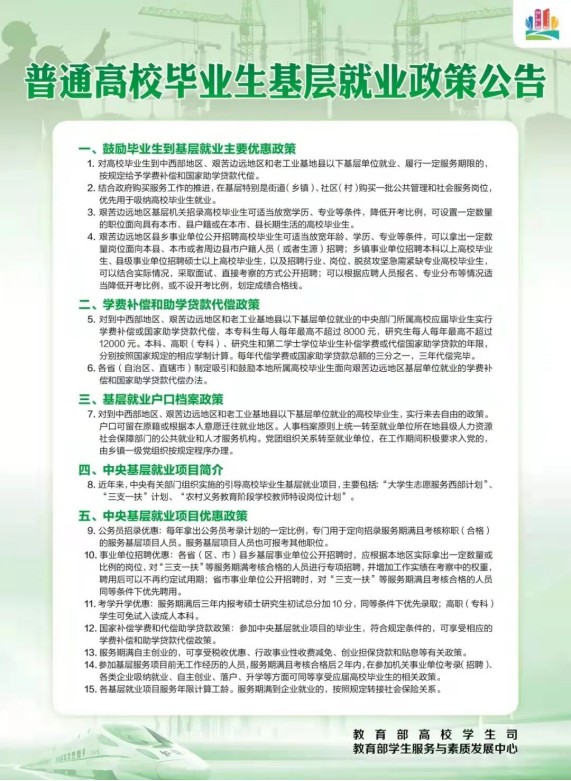 普通高校毕业生基层就业政策公告