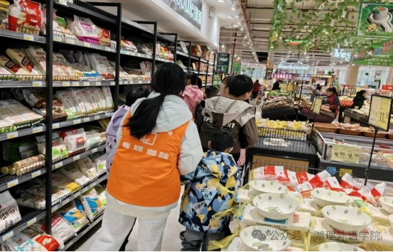 志愿者和小朋友在超市购物