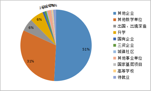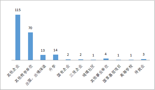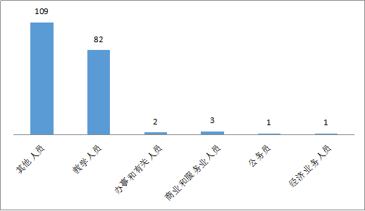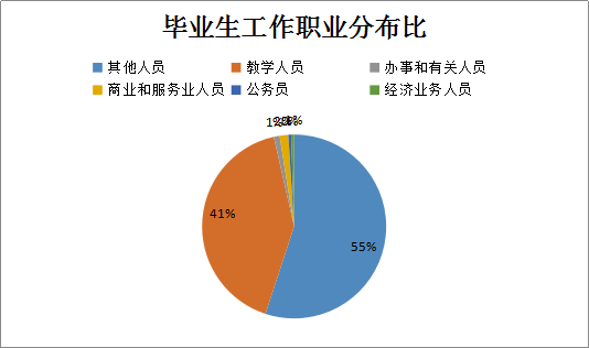 365英国上市集团2019届毕业生工作职位分布如图11图12,其他人员共109人,占最大比例为55%。其次依次为教学人员82人,占总人数的41%;商业和服务业人员、人员3人,占2%;及公务员1人,经济业务人员1人。升学(出国)27人,待就业1人。