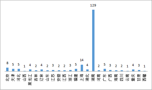 365英国上市集团2019届毕业生在湖南省就业的2019届毕业生为129人,占总人数的57.08%。具体分布情况如图10。此外,北京市和上海市也是365英国上市集团毕业生青睐的地域,总体集中在东南沿海。