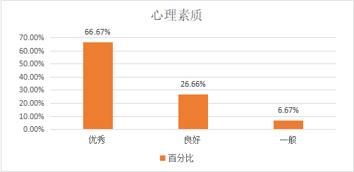 7、在心理素质方面,优秀、良好和一般的比率为66.67%、26.66%和6.67%,这说明用人单位对公司2020届英语专业毕业生的心理素质比较满意,同时也说明公司员工的心理素质较高。