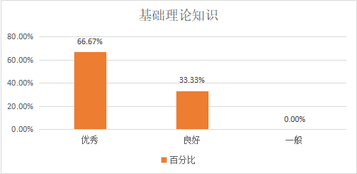 3、在基础理论知识方面,优秀、良好和一般的比率为66.67%、33.33%和0.00%,这说明用人单位对公司2020届英语专业毕业生的基础理论知识比较满意,可以指导毕业生用以实践。