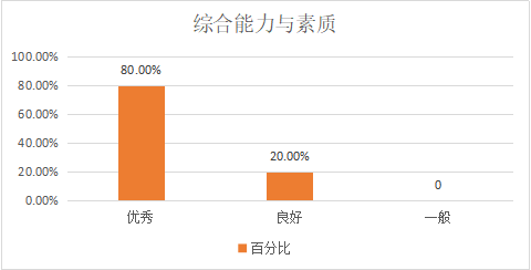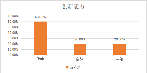 5、在创新能力方面,优秀、良好和一般的比率为60.00%、20.00%和20.00%,这说明用人单位对公司2020届英语专业毕业生的创新能力的满意度稍低,反映出在当今的就业竞争中,创新能力至关重要。