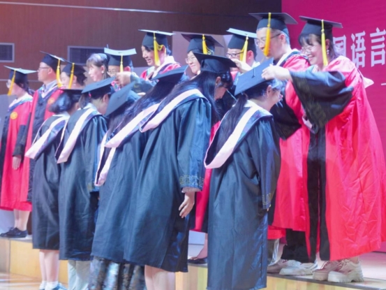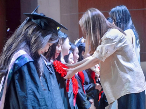 进入典礼的核心环节——学位授予仪式。领导及公司教师代表逐一为每位毕业生拨穗、颁发学位证书,并合影留念。这是对毕业生们过去学习成果的肯定,也是对他们未来职业生涯的美好祝愿。