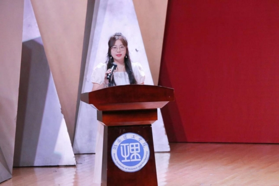 2024届研究生优秀毕业生代表张欣上台发言,她分享了自己的学习经历和对未来的展望,表示将继续努力,为祖国的建设和发展贡献自己的力量。她也鼓励毕业生们保持积极向上的心态,勇敢面对未来的挑战和机遇。