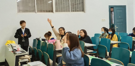 员工们正在积极举手回答问题