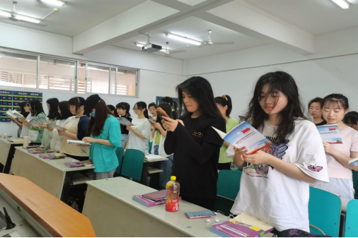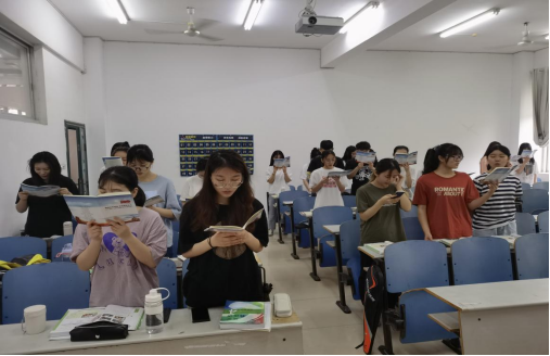 同学们大声诵读红色经典