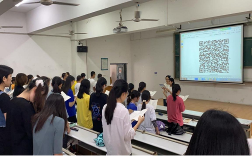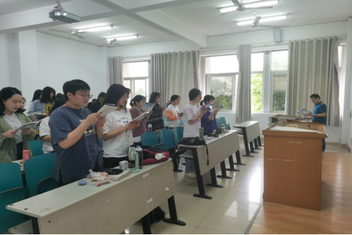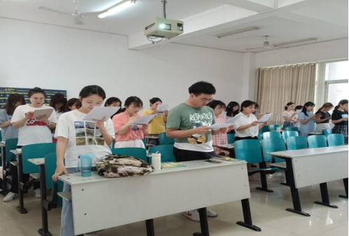 老师带领同学们一齐朗读红色经典篇章