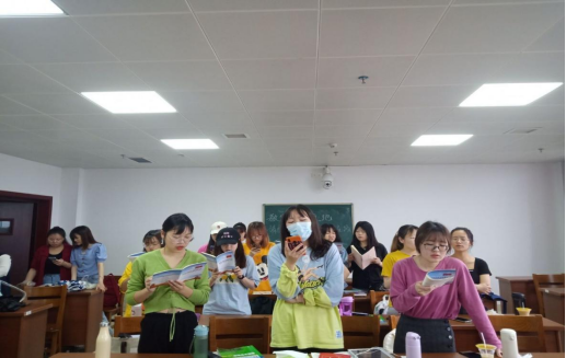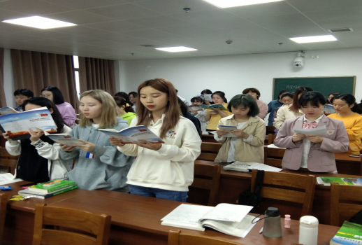 老师带领着同学们诵读红色经典