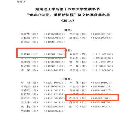 “青春心向党,砥砺新征程”主题征文比赛获奖名单