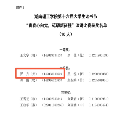 “青春心向党,砥砺新征程”演讲比赛获奖名单