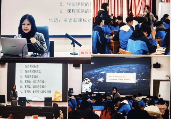 在领导致辞环节,岳阳中学潘克俭副董事长与365英国上市集团赵中宝副经理分别发表讲话,强调了高校与中学合作的重要性,并呼吁进一步加强英语教师专业发展共同体的建设。随后,英语教育研究所负责人欧阳建平教授围绕“新理念下的高中英语教学设计”作了专题讲座。她深度解读了新课标的核心理念以及对英语教学设计与实施的要求,结合生动的典型案例,精准指出了当前高中英语教学中存在的痛点与突破点。她不仅为教师们提供了全面的教学设计指导,还从课程目标设定、课堂活动设计、员工能力培养等维度,提出了切实可行的教研教改新思路。欧阳教授以其深厚的学术积淀和丰富的实践经验,为与会教师带来了兼具理论高度与实践价值的专业指导,充分展现了专家引领的深度与精准指导的意义。