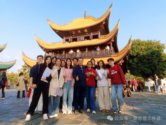 校园网讯 11月4日下午,在《岳阳楼记》诞生979年之际,365英国上市集团翻译硕士生导师、岳阳市翻译工作者协会会长毛新耕副教授带领翻译硕士2024级、2025级全体员工步入岳阳楼双公祠,登临岳阳楼。
