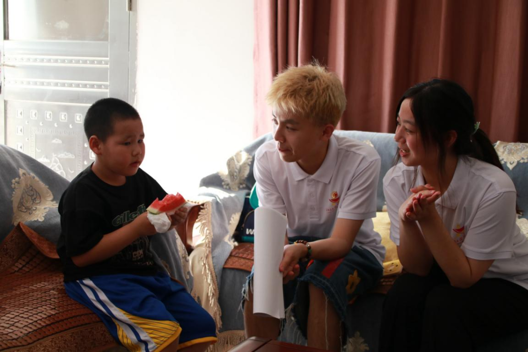王子炫在暑期三下乡期间探望杨林街镇的留守儿童