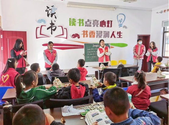 志愿者在教小朋友英文歌曲《Jingle Bells》