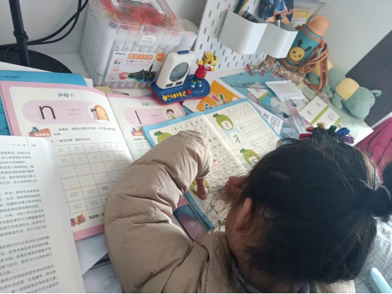小朋友在志愿者的鼓励下自主完成作业