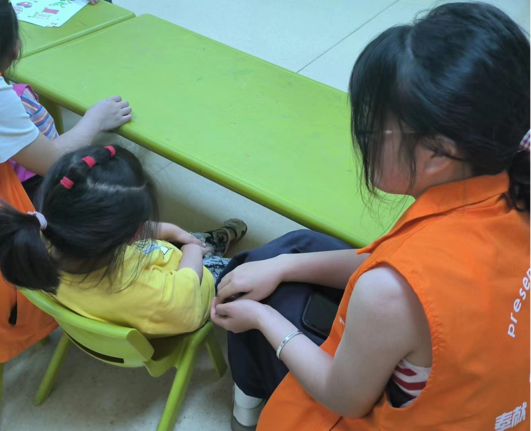 这次活动的主要内容是陪伴小朋友上课,课程分为手工课和画画课。小朋友虽然不会主动与志愿者交流,但他们会配合志愿者完成课堂任务。在下午的相处中,志愿者和小朋友逐渐熟悉,营造了一个良好的学习环境。