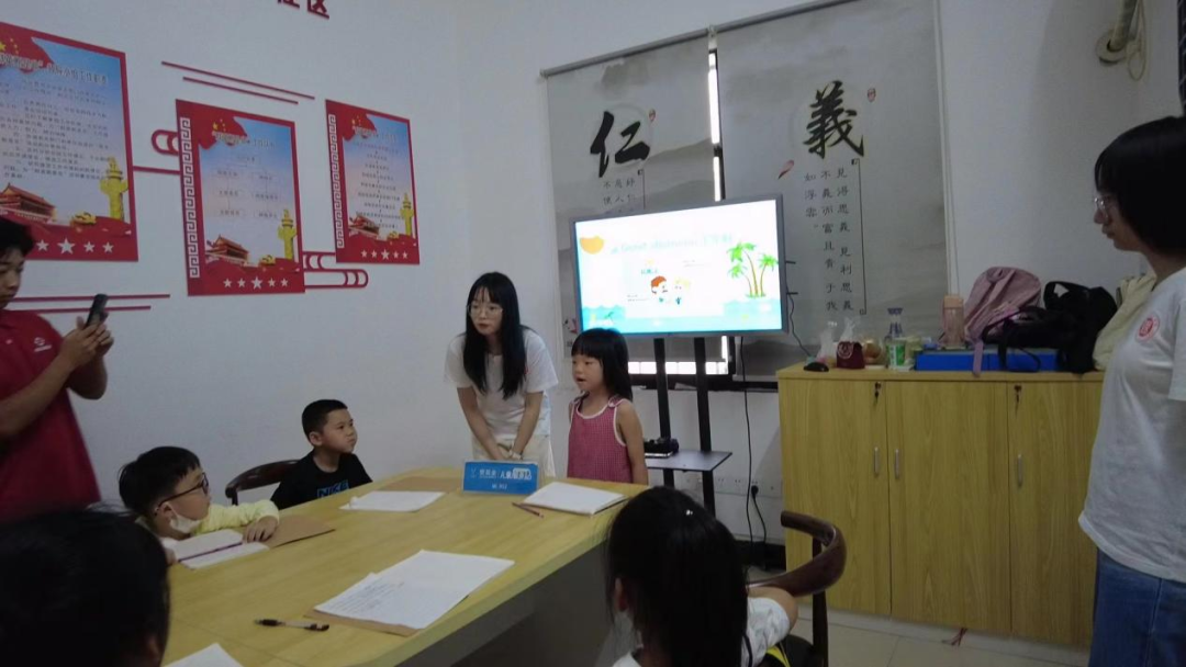 大班先对昨天新学的单词进行了复习,小朋友们参与度都非常高,还举手进行抢答,有些不熟悉的单词在老师的带领下也很快回忆起来了。结束复习后,各位老师分别带领孩子们学习剧本,有些小朋友的角色任务较轻,老师则带领大家学习新的内容,但不管是被分配到了什么任务大家都全神关注地跟随老师思考、朗读。课间的时候,老师带领小朋友们一起玩游戏,也促进了师生之间和小朋友之间的关系。最后老师为小朋友们拍摄剧本排练的视频,为大家留下轻松学习的快乐回忆。志愿者们不是真正的老师,但她们怀着一颗绝对炙热的心灵,尽她们最大的努力去帮助孩子们书写自己的将来!
