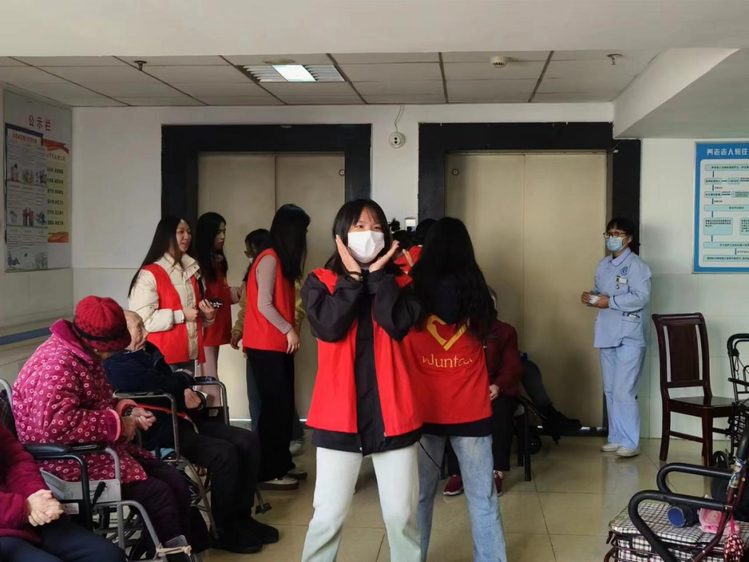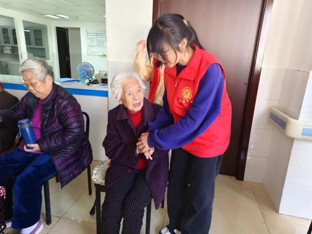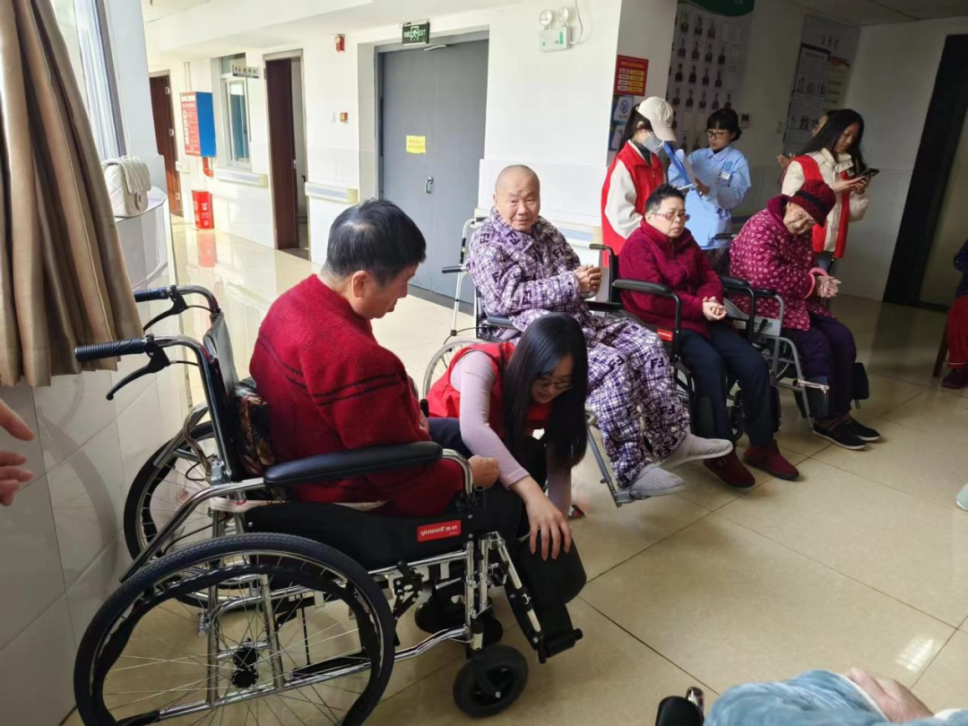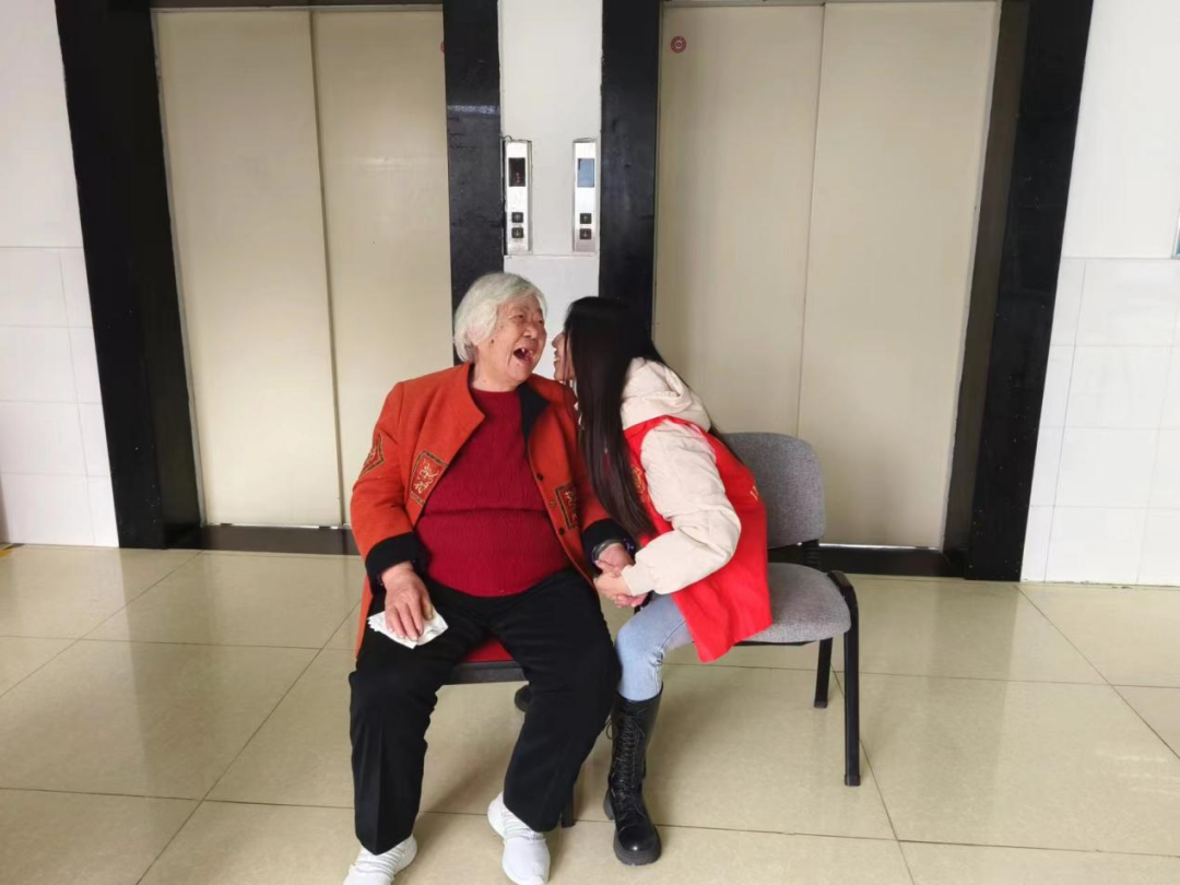 表演结束后,志愿者们走近老人们身边,陪老人们拉拉家常、讲讲笑话,传授一些养生小知识,小小的空间内却充满了十分温馨的氛围,老人们的脸上也都露出了幸福的笑容。与此同时,志愿者们还细心地为老人们调节轮椅,让老人们坐得更舒适。老人们也拉着志愿者的手嘘寒问暖,分享自己的人生经历,表达了对志愿者们的感谢。