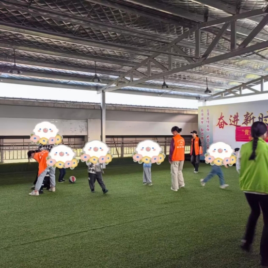 志愿者与小朋友们一同踢皮球