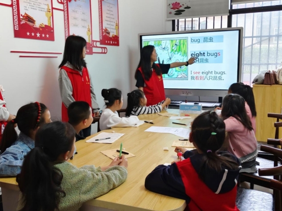 志愿者教授小朋友们英语单词