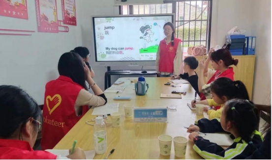 志愿者教授小朋友们英语单词
