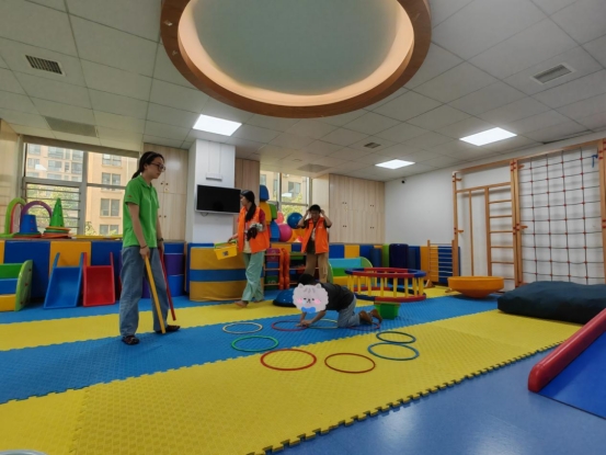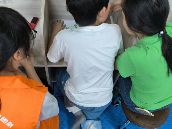 第三组志愿者负责打扫卫生,他们帮助老师打扫了教室,并且细心擦拭了小朋友上课需要用到的教学用具。
