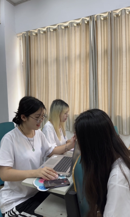 团队成员在与婚育机构进行电话沟通