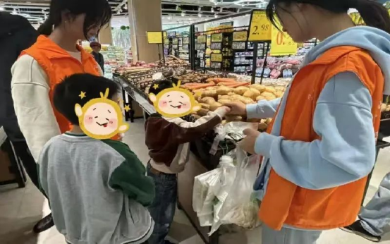 志愿者分工明确,一组志愿者陪同着小朋友上点心课,去超市购买所需的物品,并教小朋友认识各样的蔬菜水果,接着在老师的带领下,志愿者和小朋友一起完成了绘画作品,小朋友们相处融洽,志愿者也收获颇丰。另一组志愿者来到办公室,认真整理着办公室的物品,将每种物品分类整理到不同的柜子里。