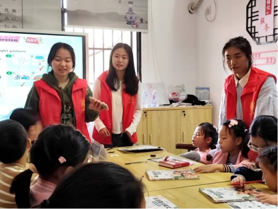 本次志愿活动分大小两个班展开,根据小朋友的年龄层次采取了不同的教学模式。这次大班的授课志愿者是李欣悦和刘梓茹,其他志愿者对小朋友们一对一展开辅导。课堂的内容是为小朋友们播放听力并进行讲解,认识相关的生词,并通过播放视频引入有关立冬节气知识,这同时也增强了课堂的趣味性。此次小班的教学任务主要是教小朋友认识课本上的生词,并对简单的英语对话进行记忆,主讲人是李鑫宸和胡璨。对于大小班的小朋友,志愿者通过回答问题给予贴纸奖励的方式提高了小朋友的学习热情,很多小朋友都高高举起了自己的小手,课堂氛围轻松有趣。而一些比较害羞的小朋友,在志愿者的耐心的鼓励与引导下也渐渐地参与到课堂学习中,快乐的学习英语。