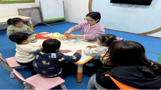 点心课上,志愿者运用豆子类的食物锻炼小朋友的手指抓握能力;运动课上,志愿者与小朋友一起躲避路途中遇到的障碍,锻炼小朋友的反应能力;玩具课上,志愿者与小朋友一起搭建积木,引导小朋友找到合适的拼图,让小朋友充分发挥想象力。