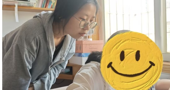 有志愿者询问家长后了解到小朋友在数学计算方面容易出错。针对这一情况,志愿者引导小朋友对较难的公式采用打草稿的方式进行计算。在志愿者的耐心辅导下,小朋友计算的正确率大幅提高。