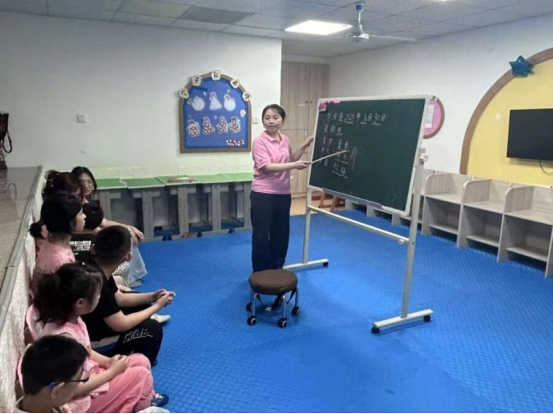 在手工课上,志愿者和小朋友搭建出一个个奇妙世界。志愿者协助每个小朋友完成了“装在罐子里的夏日萤火虫”手工卡纸制作,展现出了小朋友的创造力。在游戏课上,大家围坐一起玩小游戏,在互动中增进了彼此的情谊。每一组志愿者都沉浸于这次与小朋友互动的快乐中。