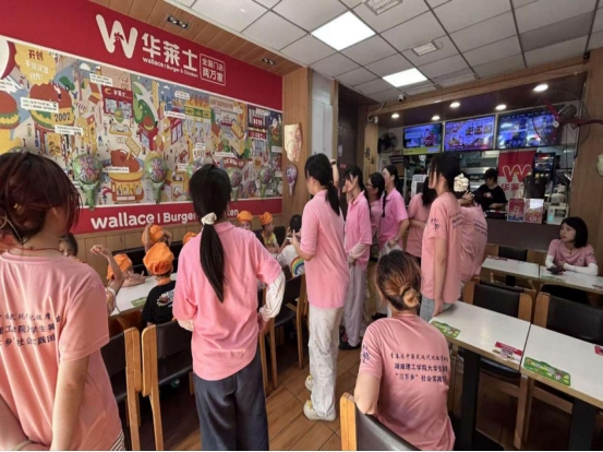 外出实践课上,志愿者和老师一同带着小朋友外出去制作汉堡。志愿者协助管理小朋友,帮助他们穿好制作汉堡前的衣服,在小朋友制作汉堡时提供辅助。在志愿者、老师和小朋友的共同努力下,小朋友成功制作好了汉堡。志愿者在实践课上帮助小朋友进行心灵疗愈,小朋友和志愿者相处的十分融洽和谐,活动充满了温馨与欢乐。