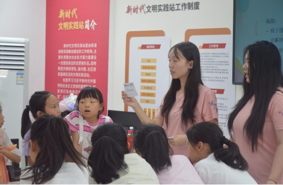 志愿者在引导孩子们做游戏