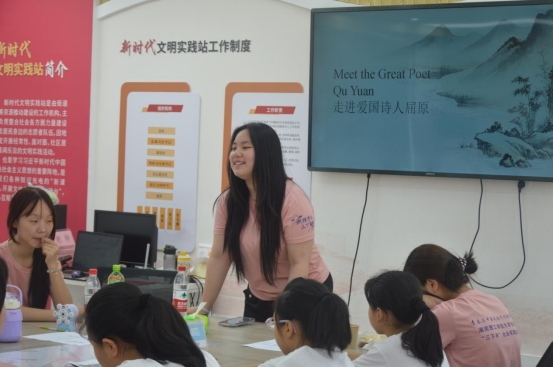 课程最后,志愿者老师们引导孩子们思考屈原精神的当代意义。小朋友们积极发言,有的说要学习屈原的爱国精神,有的表示要像屈原一样坚持正义......在齐声朗读“Qu Yuan's spirit inspires us”的洪亮声音中,这堂融合了英语学习和红色文化的特殊课程画上了圆满的句号。孩子们不仅掌握了新的英语知识,更在心灵深处种下了爱国主义的种子。