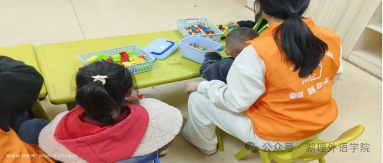 志愿者陪小朋友搭积木